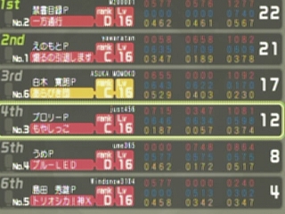 モザイクなしサーセン。 いかに悔しいか、おわかりいただけただろうか・・・ くやしい・・・くやしすぎてつい悪態ついてしまった。すいません>メイドさん ついでですし解説してみますか。最近アイマスの話題あんましてないし~ ~第一審査~ これは仕方ないです・・・自分にとっては不運でした。 解説することはなしかな?ただノボ13通されたのは感じ取ったので第二審査から対策立ててます。 ~第二審査~ 第一審査でノボ13通された上、1が3人しか減らない。これは自分もわかりました。 しかし、ノボ13(ノボ12)をニ連続でやるのはあまり経験が無かったので、上記の配分(347-634-57)の2スピアの理論で、メイドさんの1ボム13を促しました(自分がケツボムすれば600-700-230)←修正しました 自分が1ボム打っていれば1ボム12が通りましたが(事実通るようにやらなければ陽動にはならないですが)1ボム13プレスを打たれるものだと思っていたので実際にボムを打つつもりはありませんでした。 ~第三審査~ 本来なら第二審査でメイドさんのボムを使わせて、第三審査でメイドさんの2ボムを自分の2ボム12プレスで潰そうと企てていたものの、ボムが打たれない。 が、嘆いていても仕方ないので2ボム12。 みくる Vo 1082 3rd Da 609 2nd Vi 378 3rd 自分 Vo 1081 4th Da 598 3rd Vi 374 4th ああ・・・今年で一番納得のいかない負けかもしれない。 くやしい・・・